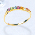 K18イエローゴールドに、ピンクトルマリン・ブルームーンストーン・シトリン・ロードライトガーネット・ブルートパーズ・ペリドット・アメジストが入ったカラフルなリングで価格¥52,500。