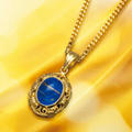 地極産業(株)(地極堂/旧ザイクス)のパワーストーン(核石)、『青池─「チ」の神社』。これも以前『実り』の名で出回っていたもの。石はルチルクォーツにラピスを貼り付けたもの、金属部はシルバーに金メッキ。これで5万円は適正価格なのか? それは消費者それぞれの判断によるところなんでしょうね。