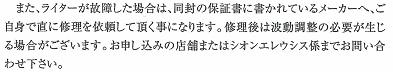 元々はよその会社が販売していた物ですが、チラシには「ライターが故障した場合は、同封の保証書に書かれているメーカーへ、ご自身で直に修理を依頼して頂く事になります」とあり。