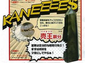 『売王(バイキング)親分』(茶水晶・¥21,000)は、アメリカン・コミック調の演出と相俟って、某大型買取販売店を思わせる雰囲気に仕上がっていて、このテの広告を専門に分析されているサイトの管理人さんをして“(地極産業とは)関係なさそうです”と言わしめた韜晦術は見事だったと思います。