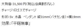 シルバーの金具に水晶のペンダントで、大特価¥31,500(税込/会員割引なし)。