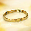 ゴールドカラー(K18イオンコーティング)仕上げのチタン製ブレスレットで、価格¥52,500。