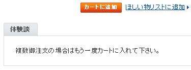 “複数御注文の場合はもう一度カートに入れて下さい”とのこと。