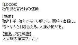 この聖品を担当する精霊は、“大犬座の精霊ファギル”とのこと。