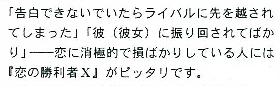 ライバルが多い恋にお悩みの方むけだったようですが、こんなのに頼ってることがライバルに、ましてや意中の相手に知られたら…