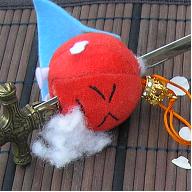 地極産業こと(株)シリウス(旧・地獄産業,ザイクス)がかつて何かの“エレウシス”の際に配布したパワーストーン(核石)入りマスコット、『甘露玉』。(後ろで死んでいるのは『日の子ちゃん』。)