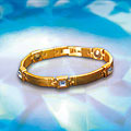 ゴールドカラー(K18イオンコーティング)仕上げのチタン・ブレスレットで、価格¥52,500。