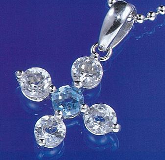 K18WGの金具にブルートパーズ+ホワイトトパーズのペンダントで、(当時)定価¥49,000。