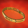 ゴールドカラー(K18イオンコーティング)仕上げのチタン・ブレスレットで、価格¥52,500。