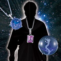 地極産業(株)(地極堂/旧・地獄産業,ザイクス)のパワーストーン(核石)、『スター・ザ・モンスター』セット。『スター眼』と『神魂(かもす)神社』と竜のレーザー加工されたガラス玉のセットで¥126,000。